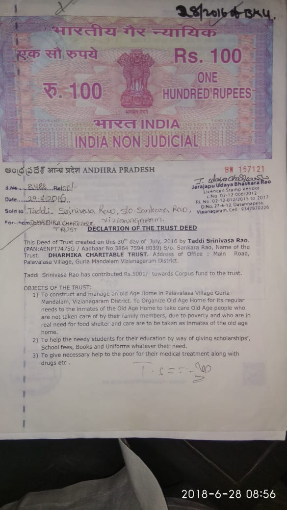 Contribution to Oldage Home